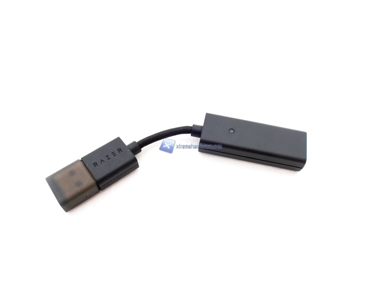 Infine troviamo una scheda audio USB dedicata di ridotte dimensioni. Questa come in molti altri Headset o casi è una vera e propria scheda audio che ci permetterà di virtualizzare un suono 7.1 Surround per le nostre ManO’War.