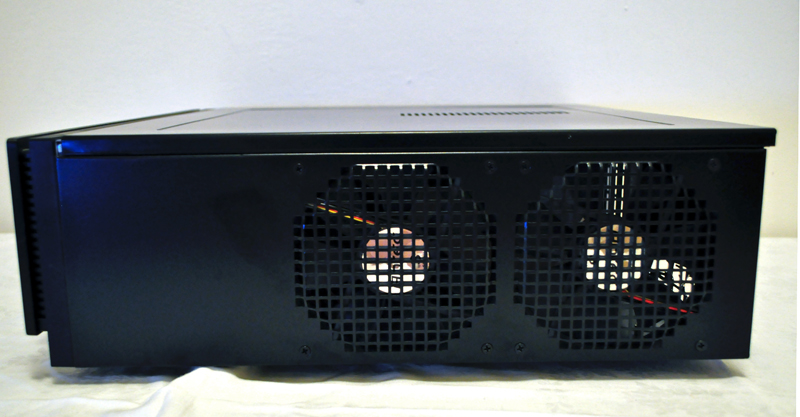 Nella parte laterale destra del case possiamo trovare due griglie, dotate di ventole, per la fuoriuscita dell’aria calda all’esterno del chassis. Nella parte sinistra troviamo altre griglie in corrispondenza del vano per alloggiare l’alimentatore, che consentono di aerare quest’ultimo.